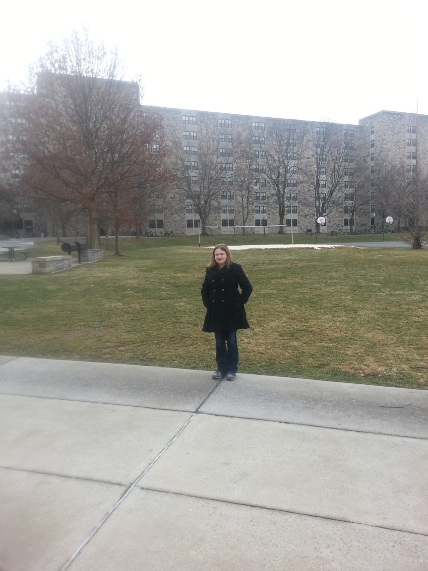 Visiting Virginia Tech. Me standing in front of the dorm I lived in freshman year, Lee Hall.