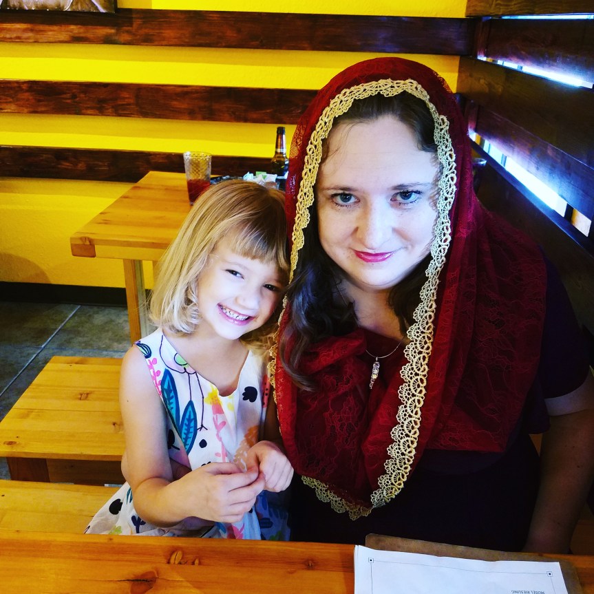 This topic may seem a little bit mature for a child who isn’t quite yet 5, but I figured if she is old enough to ask the question then she is old enough to get at least a basic answer to that question. Perhaps it is better to teach her about submission young. I hope she will choose to wear a veil or some sort of head covering. The Bible says that that is what we are supposed to do, and furthermore I have found that wearing one reminds me to be a better wife. But even if she decides, based on her interpretation of scripture, that she does not need to wear a head cover hopefully she will learn lessons from me about submission and letting your husband lead. I want her to learn The importance of being a helpmate, and letting her husband be the leader that God designed him to be. I believe this is biblical. But I also believe this will give her a happier marriage if she understands the difference between the role of a man and the role of woman. Part of my job as her mother is to teach her to be a good wife. I’m not teaching her to be a doormat. But I do want to teach her about submission. Maybe it’s time to start and this was a good first step. She seems interested in wearing a veil herself, so maybe she will pick up on the more important aspects of respecting and honoring her husband as well.