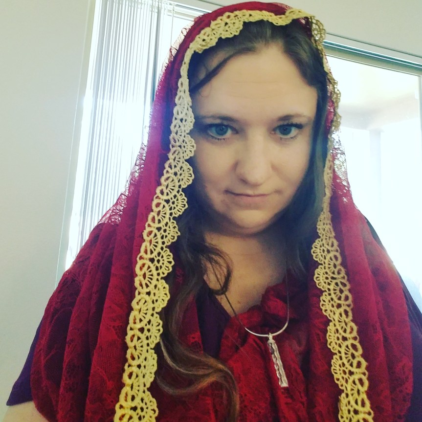 I also explained that I wear the Veil out of obedience to God. Wearing a head cover is not just for married women. I headcover out of reverence for God. I also headcover because of the Angels, but I decided not to get into that with her at this age.