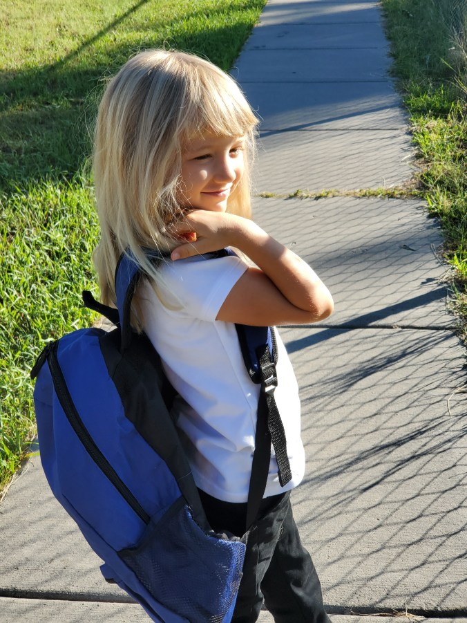 Angelica has started school, and it feels beyond strange. My beautiful baby girl isn’t at home with me anymore. I dropped her off at school this morning and now here I am – sitting on the porch swing with no one to cuddle. Angelica always follows me to the porch swing to cuddle.