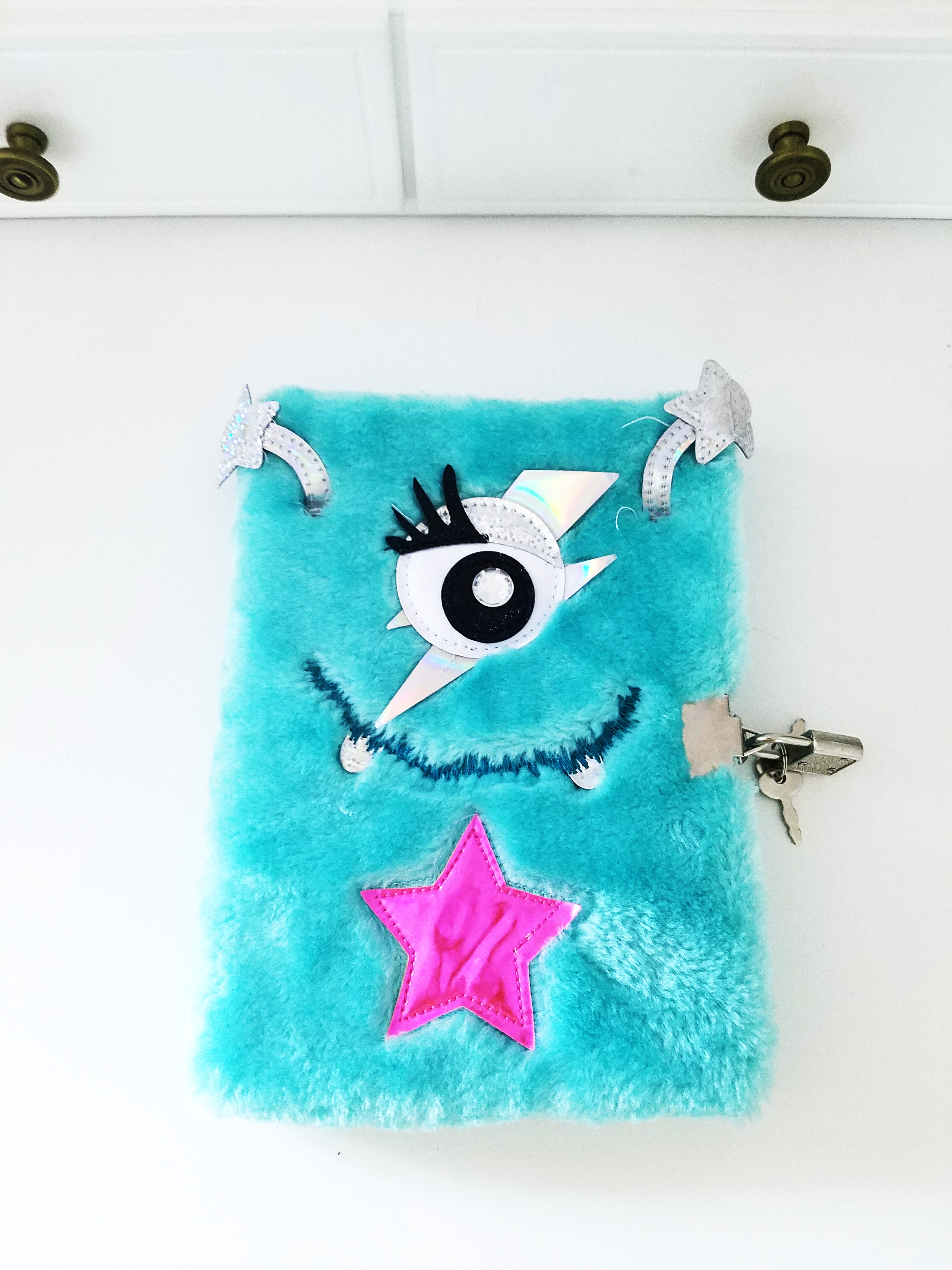 I love collecting journals and writing in them and adding stickers and pictures. There are several journals in my growing collection that I really love. This one is by far the cutest and most lovable. She is part of a set. I have a big plush stuffed friend who is the mother and looks just like her. Then I have the babies, little keychain Andromedas each named Baby Stella.